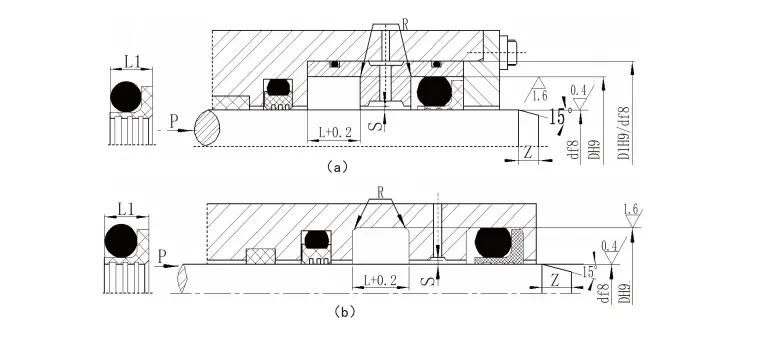 | 2. Айналмалы тығыздағыш үшін айналмалы біліктің бетінің кермектігі HRC ≥58 болуы ұсынылады. 3. 30МПА-дан асатын қысым үшін H8 / F8 экструзиясы үшін ұсынылады. | ||||||||||
