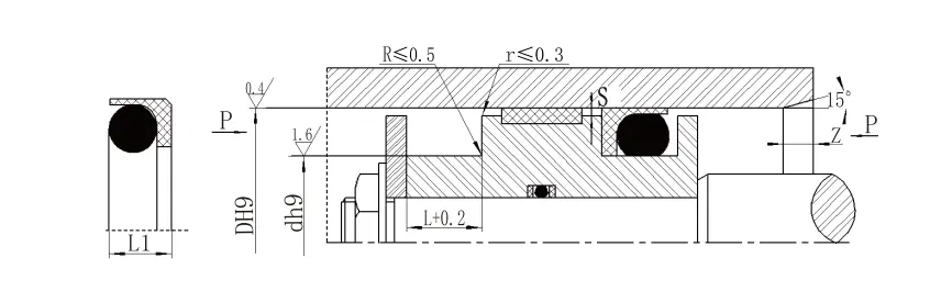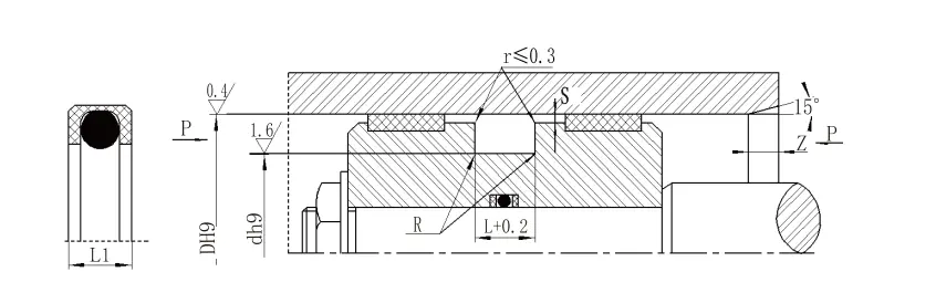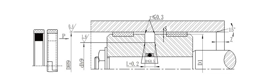 | Диафрагма ауқымы D H9 | Диаметрі D H9 | Ойық ені Өшпін+0.2 | Мөрдің биіктігі L1 | Дөңгелек бұрыштар RЕңбек | Радиалды тазартуЕңбек | Бөлігі З.мин | O-сақиналық сым диаметрі дO | |