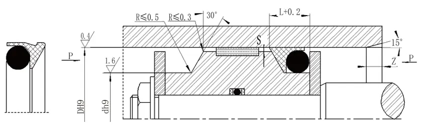 | Диафрагма ауқымы D H9 | Диаметрі D H9 | Ойық ені Өшпін+0.2 | Радиалды тазарту SЕңбек | Бөлігі З.мин | O-сақиналық сым диаметрі дO | |
